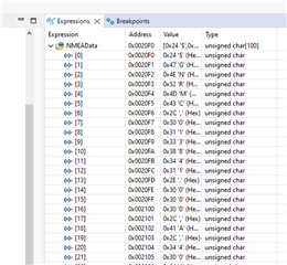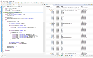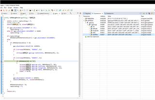 Code along with debugger showing variables: (NMEAData is spot on correct)