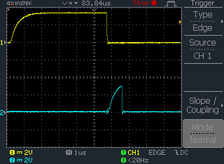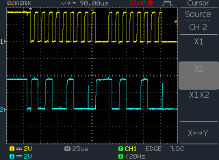 That little spike on the data line concerned me, but it seems to come after the 9th clock pulse so I don't think it's problem, right? Here's a closer look at that pulse: