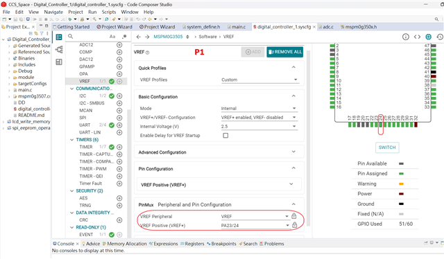 i can't measure 2.5V(PA23/pin 72) in my multimeter, my previous project was MSPM0G3507(P1) and i can measure 2.5V(PA23/pin 24)