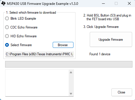 4. The MSP430_USB_Firmware_Upgrade_Example-1.3.1.1-Setup.exe from the