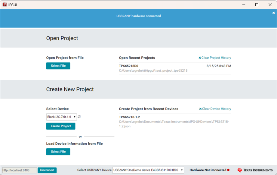 2. The latest revision of the TPS65218 IPG-UI device file (TPS65218-1.x.json) and script file (TPS65218-