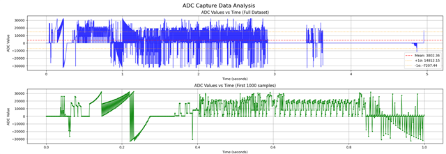 Since I don't have access to the USS design center adc capture for a log file I created my own gui to plot the capture, and this is what is displayed for all the data gathered from a capture except for the preceding -1 elements.