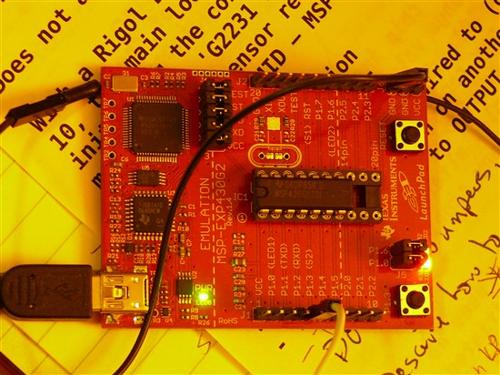 So far, so good. One might assume that a "too hot" condition would never be achieved, since the chip is only powering itself, Timer_A0, ADC10, and the external LED.