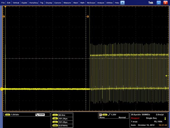 I attach the result that I get in the Osci when meassuring the output on the pin P1.1: