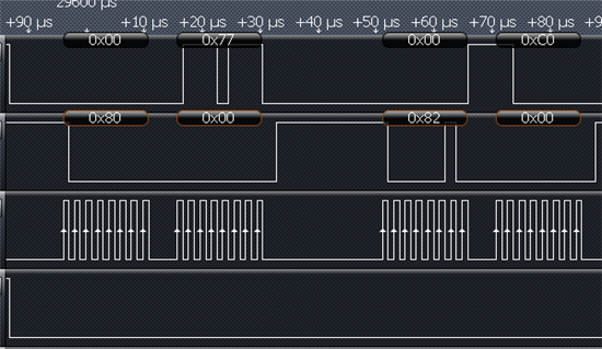 Logic analyzer reads two registers in sequence as 0x77 and 0x40 (MISO).