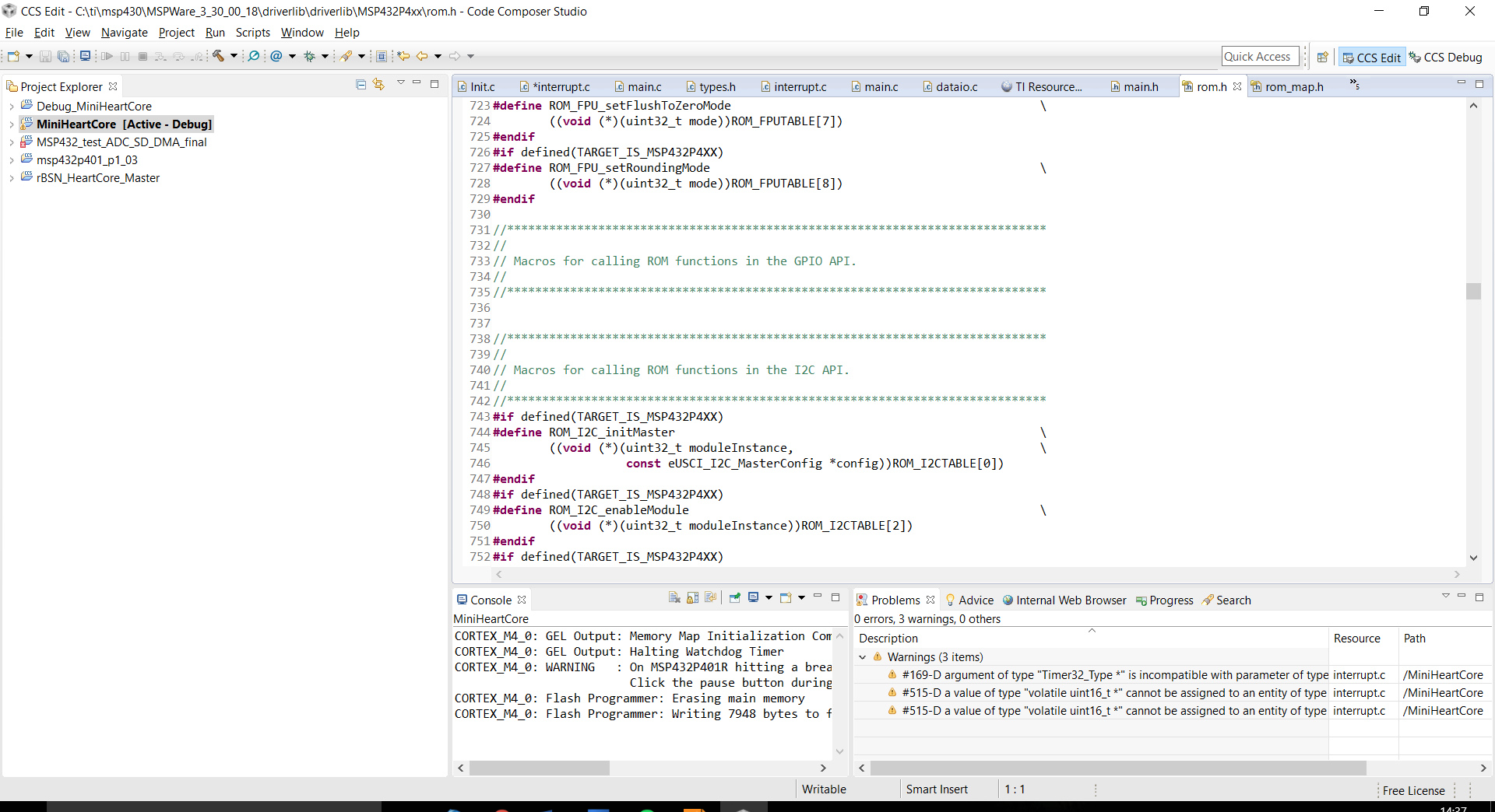 /* Timer_A1 for BUTTON0_MSP432 detection */ const Timer_A_ContinuousModeConfig TimerButton0ConConfig = { TIMER_A_CLOCKSOURCE_ACLK, // ACLK Clock Source TIMER_A_CLOCKSOURCE_DIVIDER_2, // ACLK/2 = 16,384kHz TIMER_A_TAIE_INTERRUPT_DISABLE, // Disable Timer ISR TIMER_A_SKIP_CLEAR // Skup Clear Counter }; const Timer_A_CaptureModeConfig TimerButton0CapConfig = { TIMER_A_CAPTURECOMPARE_REGISTER_1, // Using CCI1A TIMER_A_CAPTUREMODE_RISING_EDGE, // rising edge selection TIMER_A_CAPTURE_INPUTSELECT_CCIxA, // CCI1A select TIMER_A_CAPTURE_SYNCHRONOUS, // no race condiction possible TIMER_A_CAPTURECOMPARE_INTERRUPT_ENABLE, // enable interupt TIMER_A_OUTPUTMODE_OUTBITVALUE // Output bit value };