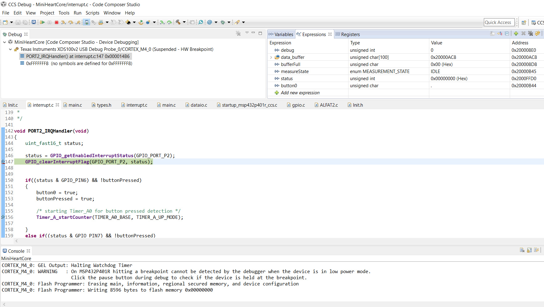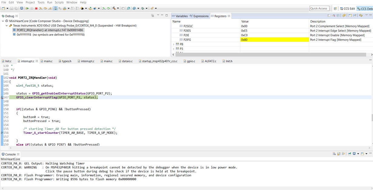 I am trying to implement a "button pressed" detection via PMAP and Timer_A1 but the Timer_a1 doesn't jump in the appropriate ISR, in fact doesn't realize there's an interrupt at all, so I wanted to ask, if somebody sees my fault here: