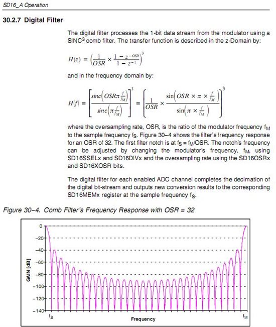 I have a problem with measurement. I need to measure signals from 45Hz to 300Hz very accurately. So, at the beginning I thought it is good idea to choose OSR as 1024 because of higher SINAD. For my application, fm is 1.024Mhz. If we calculate input response H(f) of SD16_A for 45Hz while OSR=1024 by using given equation below: