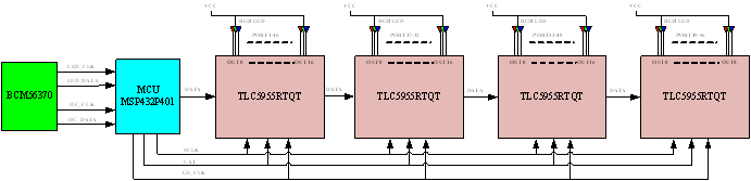 My customer is trying to drive 60-port Ethernet switch RGB LEDs using 4x TLC5955 and a MSP432, based on this TI design: