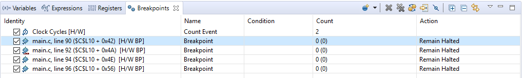 Debugger Clock Cycles feature shows 13 cycles to execute first and second statement.