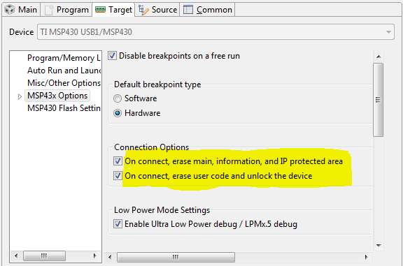 I have managed to lock the spy-by-wire interface by writing password at 0xff80 to 0xff83. I have also managed to unlock the spy-by-wire interface using CCS 8.2.0. In debug configurations { Target->MSP43x options->"on connect erase the user code and unlock the device" } option erases the entire code and unlocks the device . But I need to unlock the device using password only!!! . please provide some suggestions...