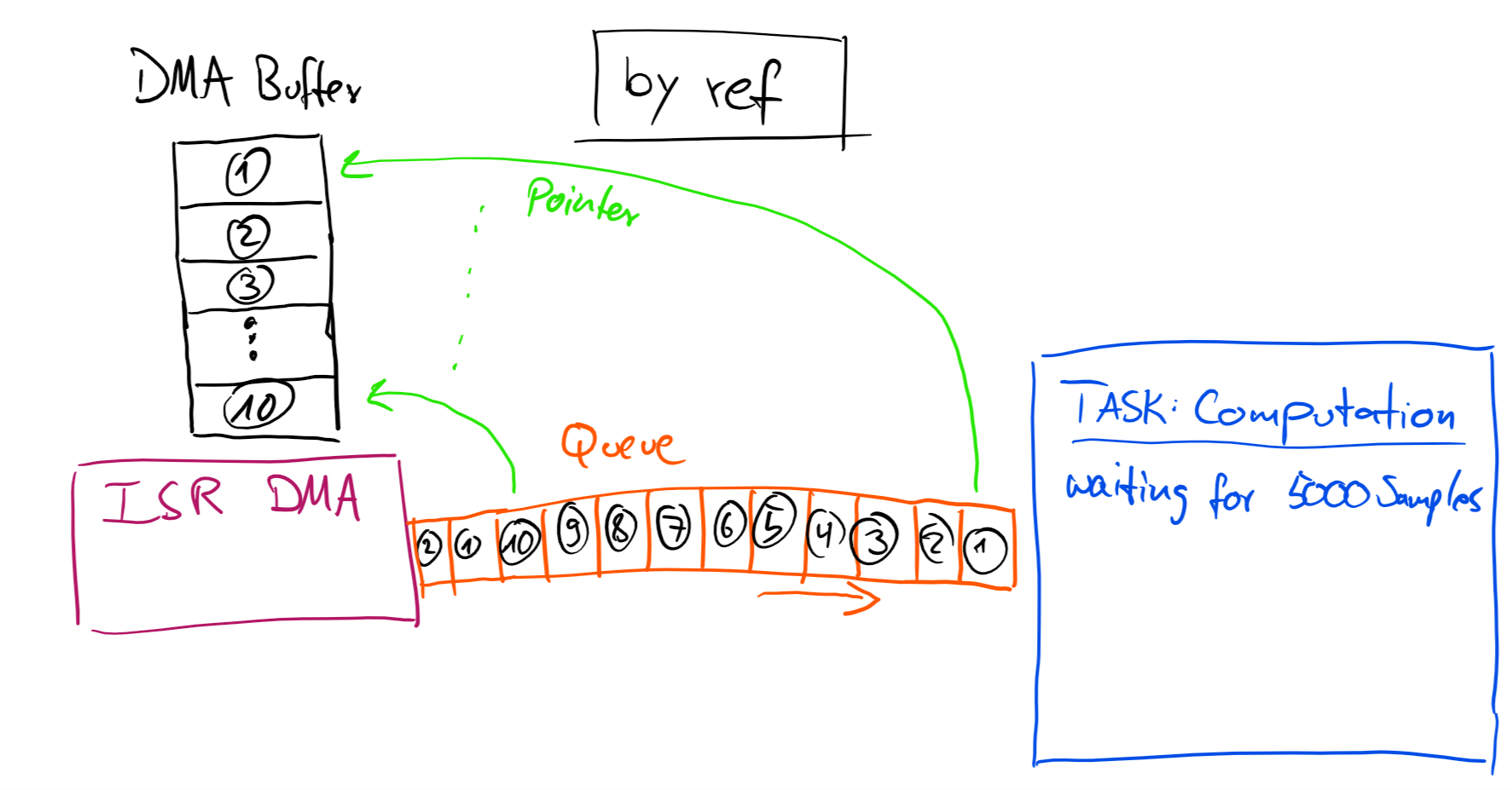 2. Send only the data pointer via queue but with more ADC sampleBuffer: