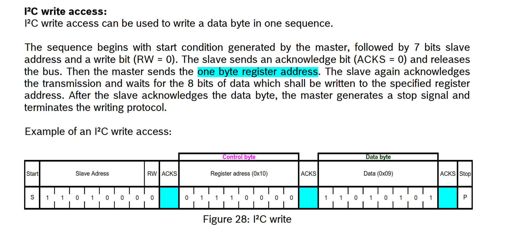 I think one thing is missing in my code: the acknowledgment bit. How can I check the this bit in my code after I sent a byte to the slave?