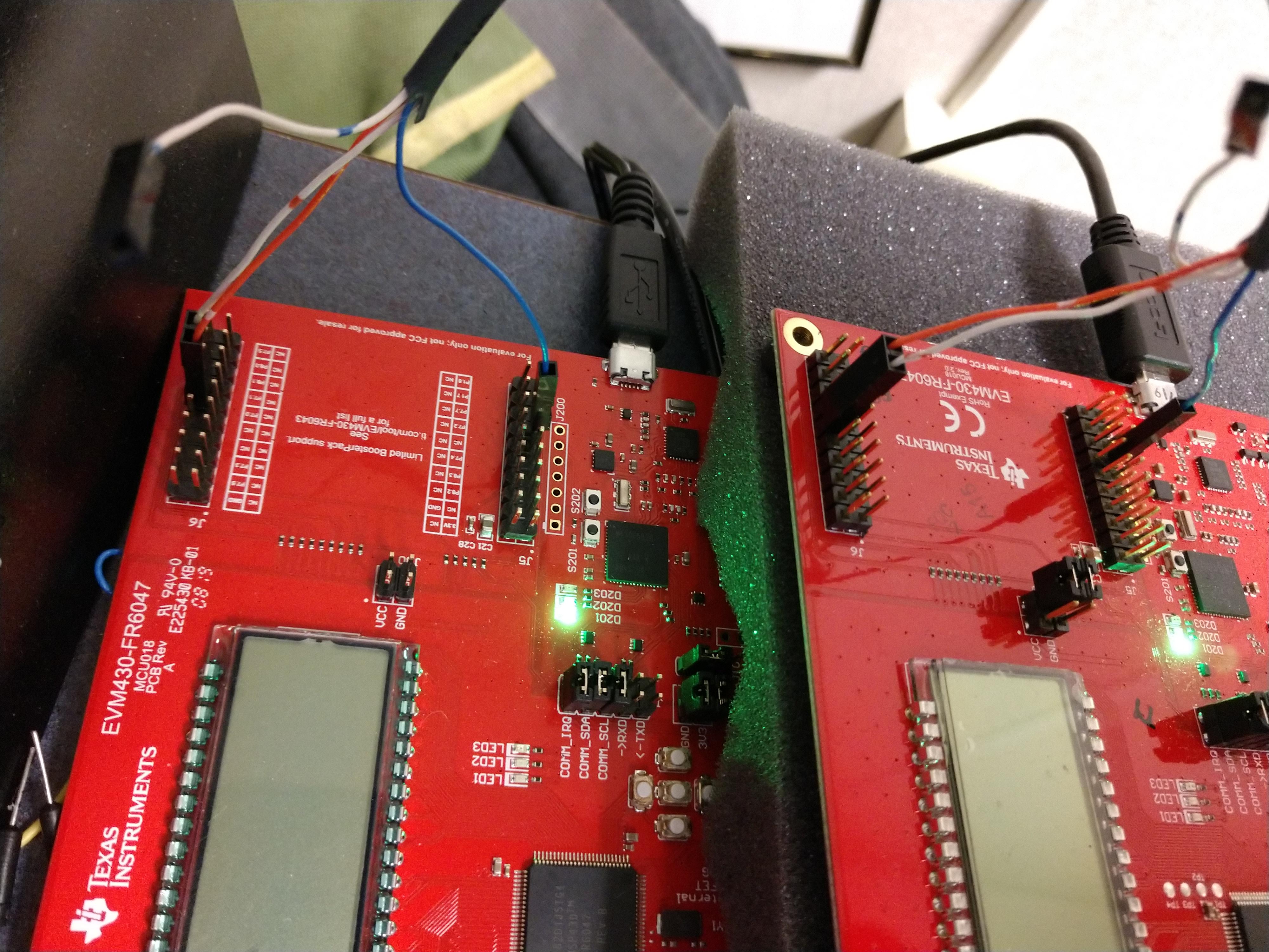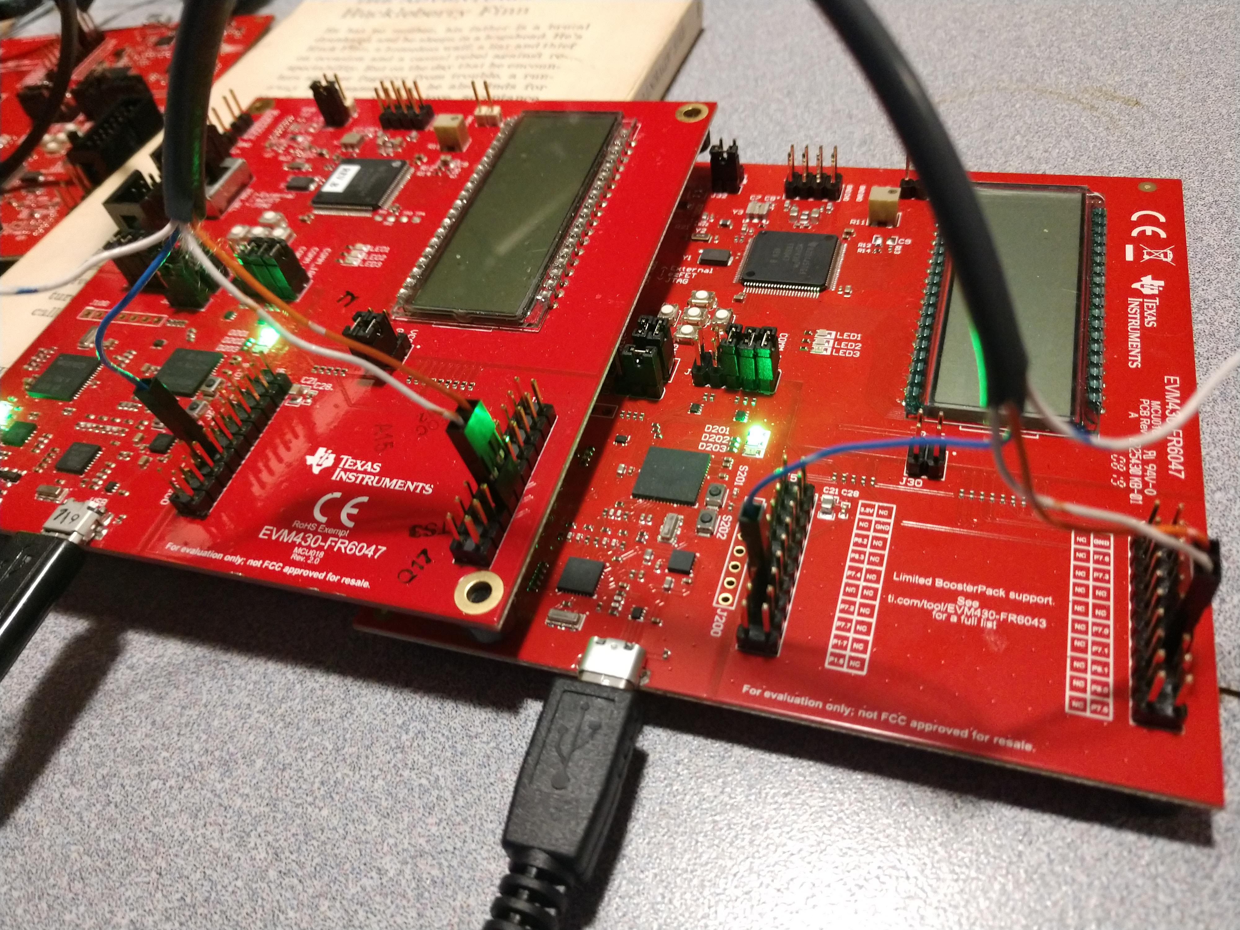 In the meantime, I'm trying to make sure that I'm understanding the SPI interface on the EVM430-FR6047 by using one of the code samples from TI: msp430fr60x7_euscia0_spi_09. For testing purposes, I have two EVM430-FR6047s connected together using a three-wire SPI connection: