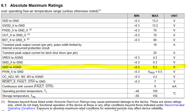 I need to calculate power dissipation for 1 ohm resistor connected between AGND & GND of DRV8412.