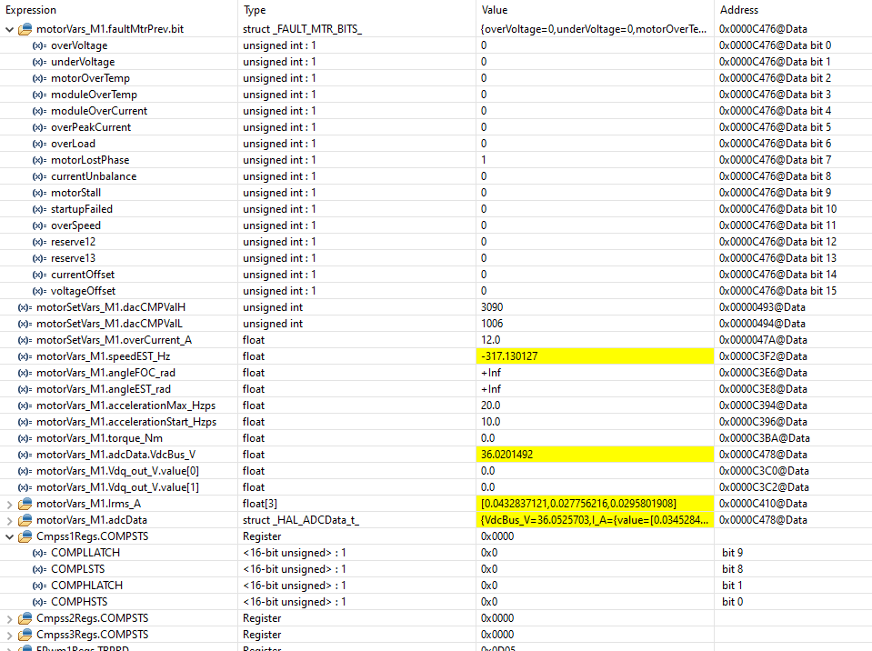 I am utilizing LAUNCHXL-F2800025C and a DRV8353RS-EVM to work through the Universal Motor Control Lab. In the Universal Motor Control Lab incremental build level 2. I am getting moduleOvercurrent faults. I have successfully completed the lab through build level 1. The DRV8353EVM does not indicate a fault nor do the registers from the 8353.