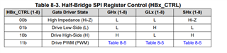 half-bridge gate drivers can also be controlled directly through the HBx_CTRL SPI control register."