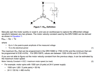 Thanks for the info. Did you verify the BEMF constant (Kt) with the motor datasheet, if not found in the motor datasheet you should also be able to calculate the Kt value to see if that addresses the abnormal speed behavior? I have attached an image from the DRV10983 tuning guide which I have linked here: