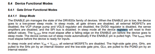In sleep mode, all gate drivers are disabled, all external MOSFETs are disabled, the