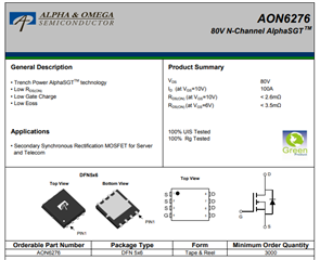 Please refer to the link of AOS AON6276 datasheet for more details.