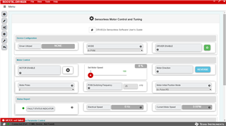 I have the BOOSTXL-DRV83233RS and the MSP_EXP430F5529P together and I am trying to use the GUI. I followed the user's guide but I am having issues getting a motor spinning.