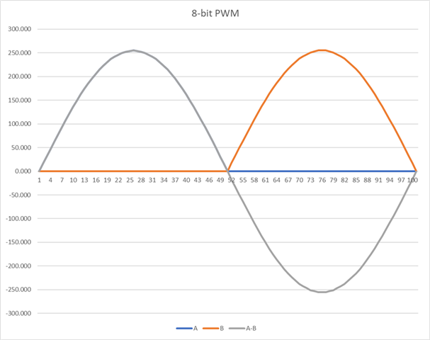I envision using 2 PWM channels an MSP430, 1 on IN1, and 1 on IN2 to make the alternating current waveform.