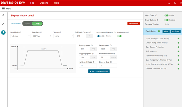 The Reciprocate is selected as per the manual, but continuous positive and negative motor motion is still not possible. Currently the motor will get stuck at startup.