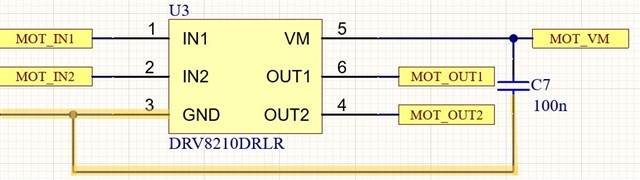 We are currently working on a project that includes a motor driver, as a result, we consider using your solution (DRV8210). We developed the application circuit as shown in the attached figure, but we have a concern regarding the GND.