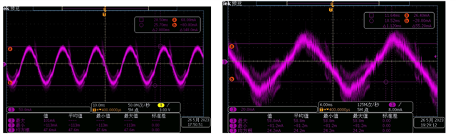 The measured waveforms are as follows, with significant periodic clutter that cannot be removed regardless of the adjustment of attenuation. And the noise of Ifs=40mA is greater than the noise of Ifs=70mA.