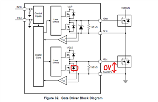 The failured DRV reports then an Vds overcurrent at a Low-Side switch. So i made some measurements with motor windings disconnected. When the device is enabled and all phases of the Motor are switched to ground the phase at the failured low side driver is not switched to ground. GLx is 0.0V and GHx of this phase is 10V but it isnt driven from the INHx pin. INLx is driven high.