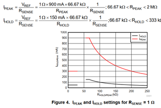 Hello, how is Rhold calculated? given: Rsence = 2 ohms, Ihold = 65mA, Ipeak = 200mA .