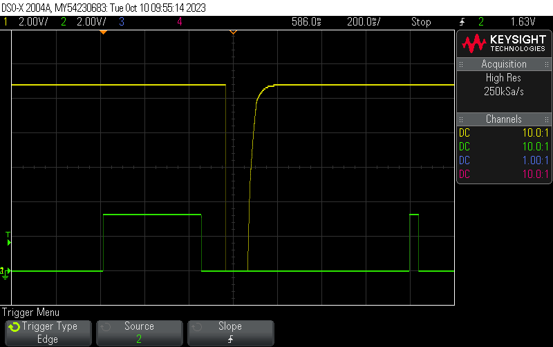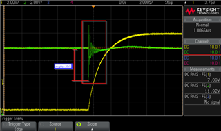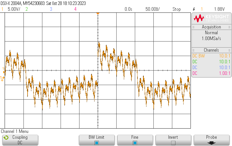 I am experiencing some strange issues. I have attached a portion of the schematic and a screenshot from the oscilloscope for reference.