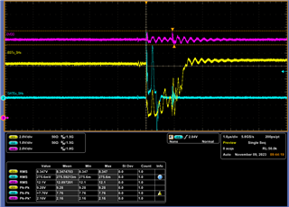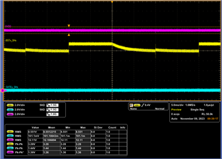 Specifically for 4 channel scope, only two phases have been measured, when driving the IC on Input A and B with low and high sides of the half bridge for BLDC, only the low side of the half bridge gate driving voltage corresponds with the PWM signal from the MCU. The yellow and blue waveforms on the screen (gate a and b on high side of the bridge) are being driven by the DRV8300, but they are not corresponding with the PWM output from the microcontroller. I have tested the code with a different design of the half bridge and it is commutating the BLDC motor without any problems.