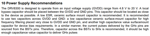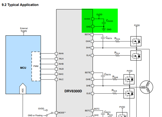 I'm using DRV8300DRGER as gate driver for inverter subcircuit of my BLDC motor controller with 3 pairs of IAUC41N06S5N102ATMA1 N-MOSFETs
