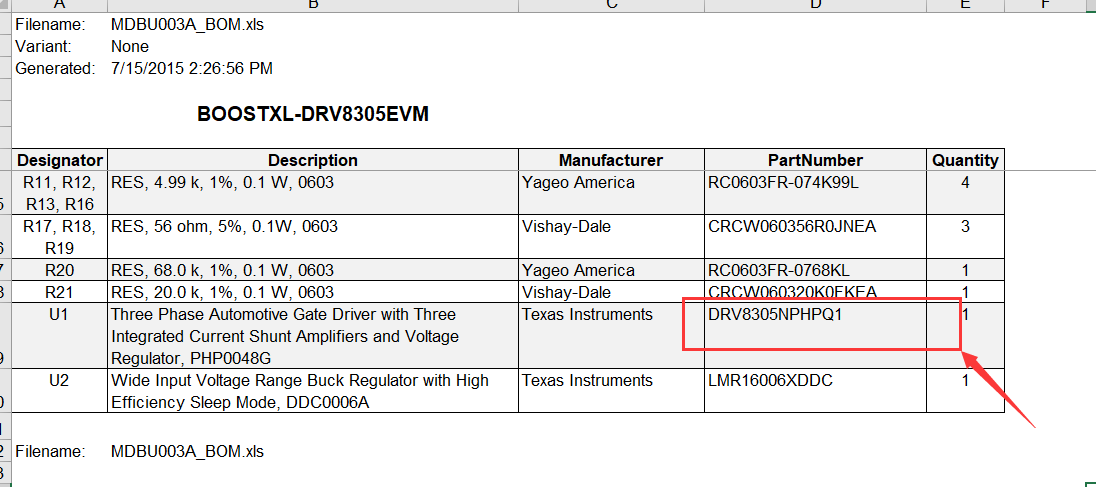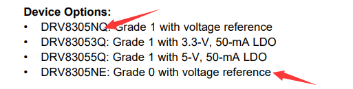 According to the BOM for the development board, it is shown that the material number of the 8305 is DRV8305NPHPQ1 (NQ or NE is not specified). However, it seems that the material model is not included in the spec. The specification has two types of non-LDO products, DRV8305NQPHPQ1 and DRV8305NEPPHQ1, which are not exactly the same as the BOM.