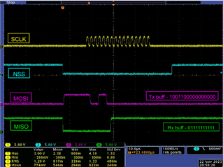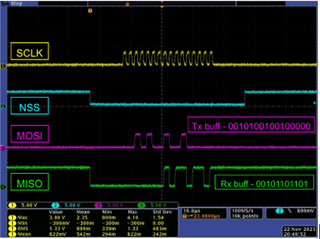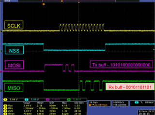 SPI speed: 537.109 Kbits/s ⇒ Time to transfer 1 bit = 1.86 s (verified value on the scope)