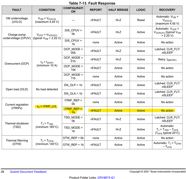 4) Normal current of the motor is 4A to 5 A, If motor current Exceeds ( in Rotor Lock ) 6.5A will nFAULT pin goes LOW