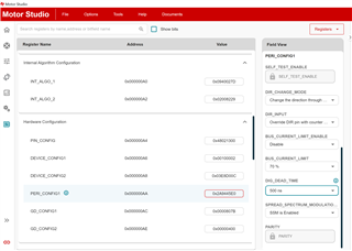 However, I cannot rotate my motor from i2c speed commands in the quick spin menu; the motor remains idle, and no fault occurs.