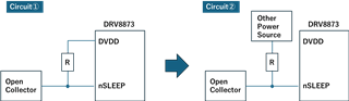 1. Can I use another external power source as the pull-up power source for the nSLEEP pin?
