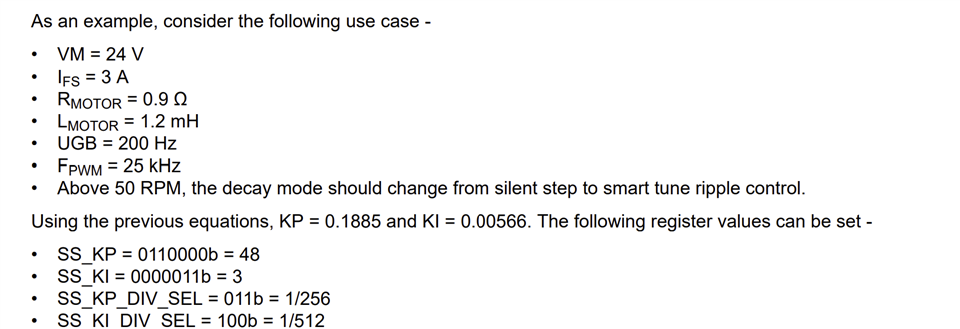 KI = KP * RMOTOR / (FPWM * LMOTOR) = 11.31