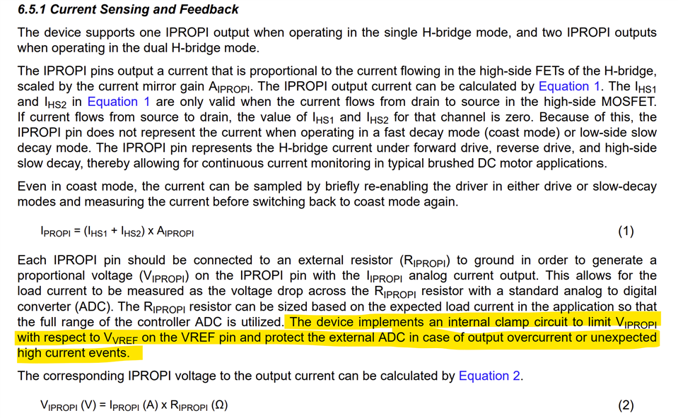 Laut Datenblatt gibt es im Single H-Bridge Mode zwei IPROPI-Pins, die man miteinander verbinden soll.