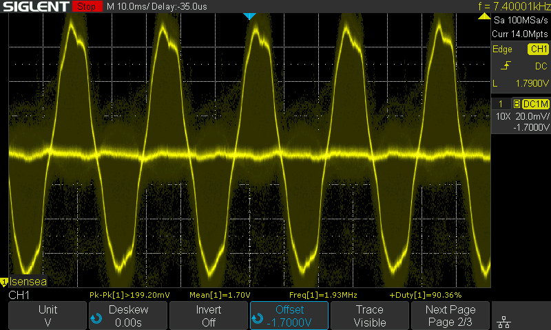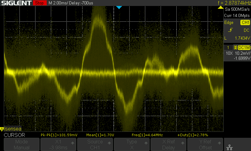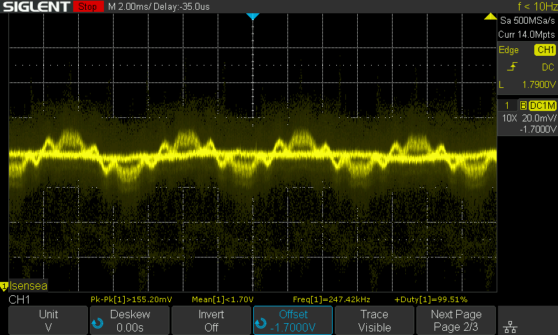When running lab 2c, The motor appears to be stable and vibration free during EST RampUp and Ls state. After identification, the motor is rough running (vibrates intensly) unless moved and or handled in some specific ways at which point it becomes stable again. Sometimes the vibration is so intense that the OVP on my lab power supply shuts off power. I have probed I_SENSE A on the boostxl using an oscilloscope.