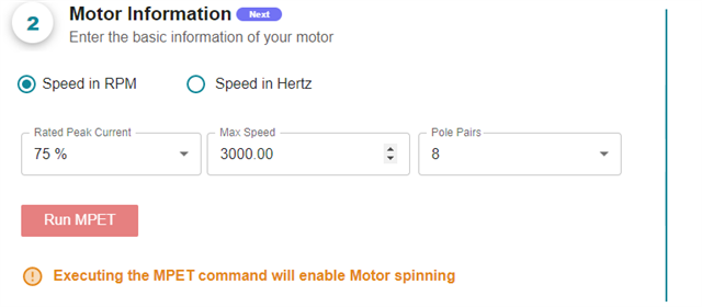 The motor I use is M-2310P-LN-04K(most TI's demo used)