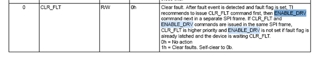 The DRV8363-Q1 datasheet indicates in several places to use ENABLE_DRV (SPI register bit) but the bit or register is not described in the documentation. Does this bit exist or should I omit this? Can you please indicate me how to proceed.
