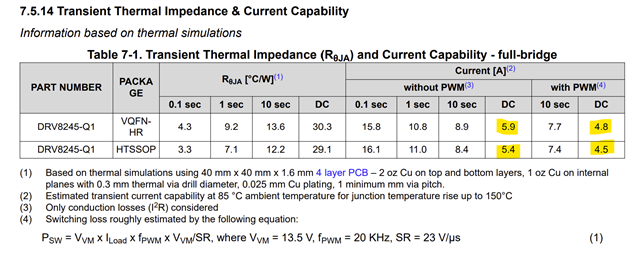 I'm using a DRV8245 in an application with a brushed DC motor. This motor operates at 13.7 volts, with a nominal current of 10 amps. I wanted to know if the chosen driver is suitable for this motor.