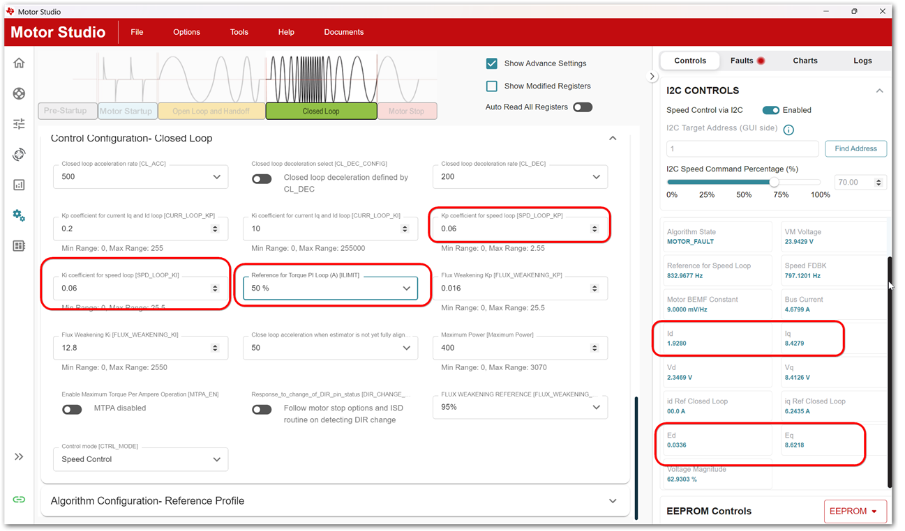 I am testing the motor drive evm board. With the help of Dhinesh, I am able to make it run: RE: MCF8329A: Not able to complete MPET testing, not be able to start the motor using knob