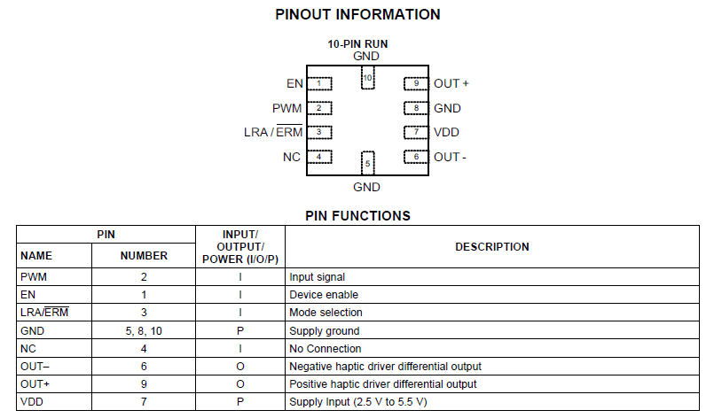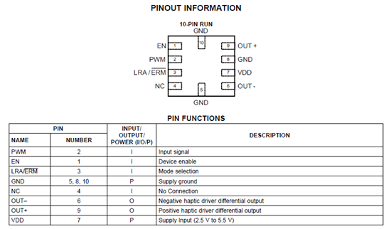 Can someone supply the pinout for the DRV2603,It does not appear to be in the data sheet.