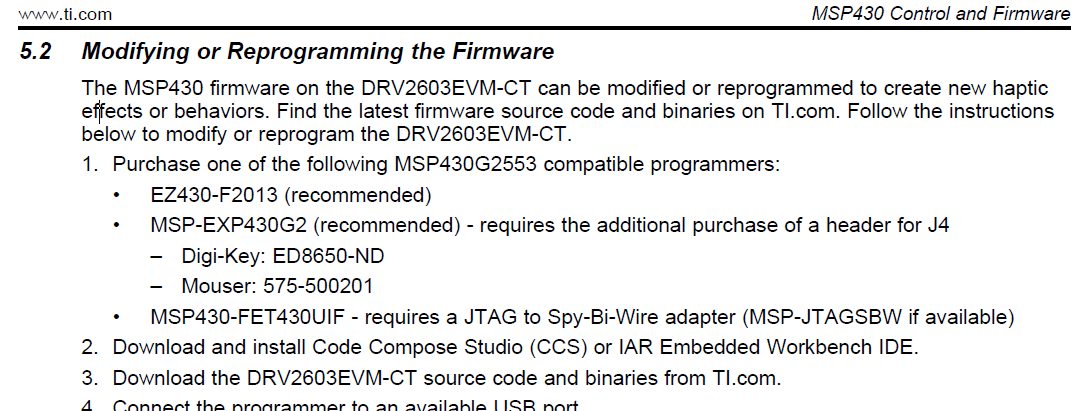 I have recently obtained a DRV2603 EVM-CT and have been trying to modify the firmware via CCS.