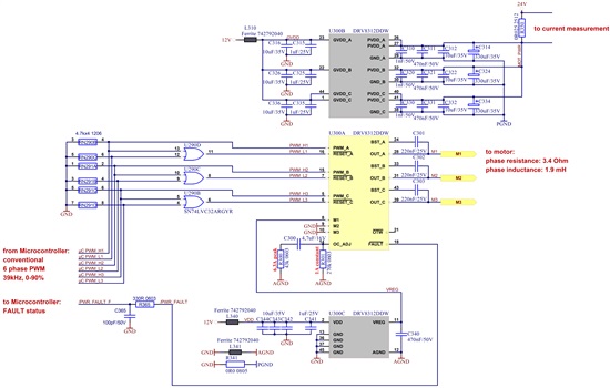 the last days I tried to get a BLDC motor working. The circuit is derived from a former version, which works fine. So there is no generic problem with it. However, I needed to replace the power stage with the compact DRV8312 stage.