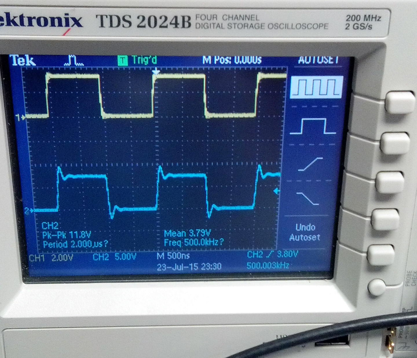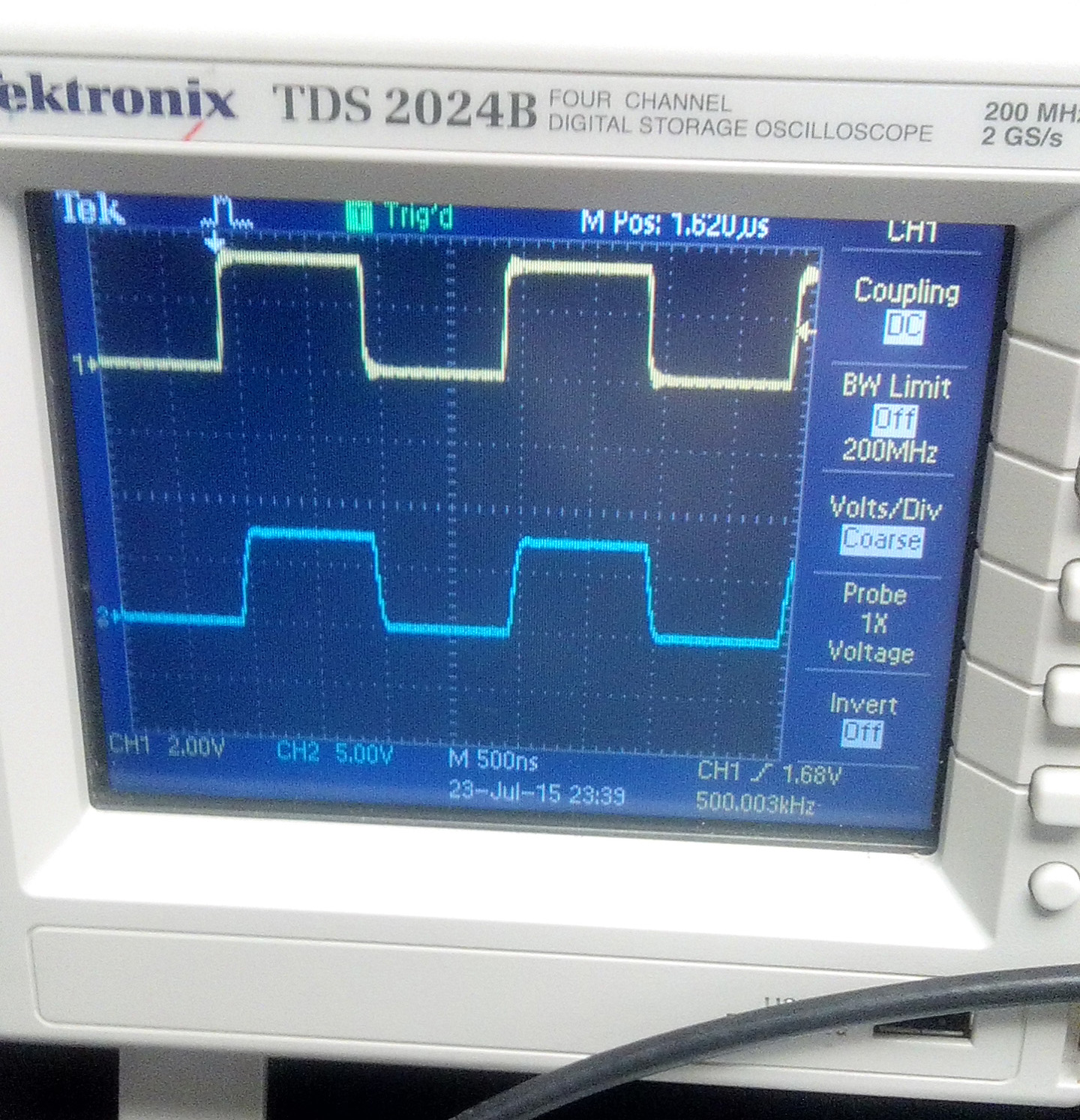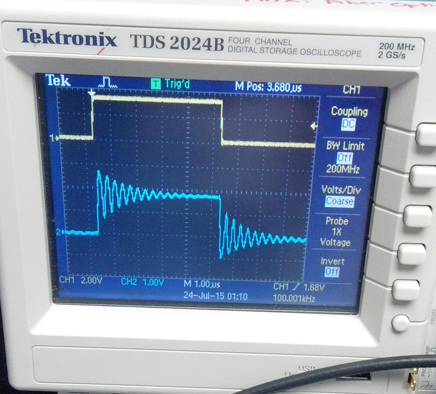 When I connect its outputs with a 200Ω resistor, the number of fluctuations can be reduced to one. Please see Figure2.